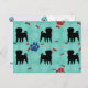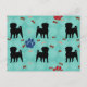 A silhouette Pug with a scattering of bones and paw tracks. This design is intended to tile seamlessly.