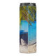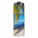 Shadows of a palm tree on the beach of Takapoto, an island in the Tuamotu atoll in French Polynesia.