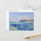 A fine art postcard with an impressionist painting by Claude Monet (1840-1926), Shadows on the Sea - The Cliffs at Pourville, (1882). A brilliant seascape of aqua blue water and a brightly lit sky with cliffs in the background.