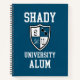 This Shady University Alum used their four years of matriculation to indulge in idle gossip and is practiced in the art of being subtle about disrespecting or criticising someone. Look at all those multi-syllable words, we Alums really did learn something and like to show off our alma mater school crest with pride on an ocean blue background. Alma mater crest with Shady University school initials shows sunglasses and gossip on the back and is personalised with the name of the proud graduate. Don't forget to choose your paper option: graph, lined, or bullet.