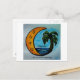 Original artwork in colour of a Palm, Moon and ocean scene with SHAG in the moon and Like no one's watching under the artwork. Show your love of Shag Dance when you send this original postcard!