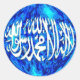 Unique Shahada  Islamic sticker on a luminous bllue starry 3-D globe, by Worldgoods. Also available in pink and green. This design is also available on pinback buttons and keychains. Tag this store and buy direct from Worldgoods for the best bargains