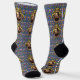 The original artwork by ZoeSPEAK on these Crew Socks features a portrait of the author William Shakespeare. The portrait rests in an original illustration of an ornate, oval gold frame with ribbons and a crown on top. The blue background wallpaper is decorated with castles, kings' crowns and yellow and red flowers, bringing to mind the romance, tragedy and comedy of his plays and poetry.