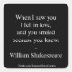 Shakespeare Quote - I Fell In Love, Square Sticker. When I saw you I fell in love, and you smiled because you knew.