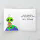 A birthday card with a colorful Friendly Alien and a Shakespearian inspired cover sentiment : To thine own self be tree" Inside is: "You're awesome just the way you are! Happy Birthday!" Text can be customized inside and out.