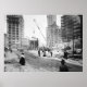 Removing debris at Third, Kearney and Market Streets, San Francisco, California, circa 1906. LOC summary: View after earthquake and fire, showing crane moving rubble, as several men and a woman pass by.