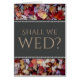 This design features a photo of rustic fallen autumn leaves, along with the important question, "Shall we wed?". A personalized message is on the inside.