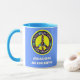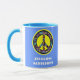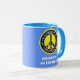 This mug is imprinted with the power of peace symbol and the Hebrew message of Shalom Aleichem - Peace Be with You .