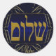 Shalom! Blue & Gold Large Round Sticker