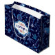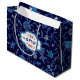 חג שמח ,פסח שמח ,שלום, Happy Passover. Star of David, "Shalom" Hebrew Text and beautiful Blue Flower Pattern Background Passover Gift Bag. Matching cards and gifts available in the Jewish Holidays Category of our store.