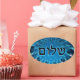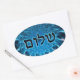 Dark text reading "Shalom" (Hebrew: peace) superimposed on a lighter blue fractal image.