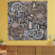 Peyote ritual, bird Ritual, shaman serpents, tan black blue ivory, boho decor, virginia vivier, vagabond folk art, indie art, mola folk art.