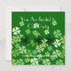 Happy and Cute Art created by Naomi Ochiai from Japan. Green Shamrock design for Irish and others who love Irish culture. Four-leaf clovers pattern in the background. Party invitation design for private and business. You can customise text!!
