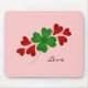 A beautiful design featuring a lucky 4 leaf clover with red hearts and the word "Love" on a pink background.