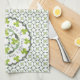 Brighten up your kitchen with this tea towel featuring a Celtic inspired pattern of interlocking curved shapes in muted green hues that is interspersed with brighter green shamrocks or three leaf clovers that symbolise Ireland, St. Patrick’s Day and the Christian Trinity. Text is easy to customise.
