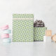 This wrapping paper is embellished with a Celtic inspired pattern of interlocking curved shapes in muted green hues is interspersed with brighter green shamrocks or three leaf clovers that symbolise St. Patrick’s Day and the Holy Trinity.
