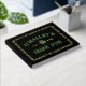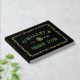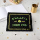 Personalised gold foil guestbook for your Irish pub with green and gold foil fonts, a Celtic knot border framing the text and printed in gold foil, your name in curved text above a shamrock with the year established and the name of your pub beneath.