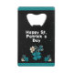 Shamrock Clover Irish Happy St. Patrick`s Day Credit Card Bottle Opener. A Happy St. Patrick`s Day text with Irish shamrock drawing for luck on a black background. You can change the text.