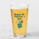 Shamrock Clover Irish Happy St. Patrick`s Day Beer Glass. A Happy St. Patrick`s Day text with Irish shamrock drawing for luck. You can change the text.