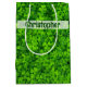 A shamrock pattern photo image. Shamrock clovers are not just for Irish or Saint Patrick's Day, they are a beautiful foliage any day of the year. Green foliage plant with shamrock clover leaves. In a bright green colour with a banner that's ready to be personalised with your name monogram.