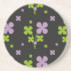 Original seamless floral pattern, lucky green and purple shamrocks on black background.