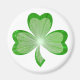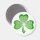 A modern design featuring a shining, green, sparkling shamrock on a white background. Fridge magnet with a customizable design for you to personalise with your own background colour, text, pictures and ideas. Created using original photographs and digital techniques by Jess Perry.
