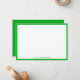 Elegant and vibrant Shamrock Green border note card. The front can be customised with a name. The reverse of the card is also Shamrock Green. The note card is the perfect accessory for your correspondence drawer ready for when you want to say hello to friends and family rather than send a text.