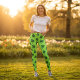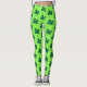 St Patrick's Day shamrock patterned leggings with lucky shamrocks in a dark green colour. The background is in Irish green colour.