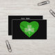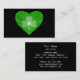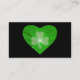 Modern design with a "shining", "sparkling" green and white heart, with a shamrock inside, on a black background and white text. Business card template with a customisable design for you to personalise with your own text, images and ideas. Please note that this is a printed image created using original photographs and digital techniques, it does not shine or contain real sparkles.