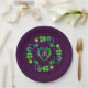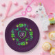 SHAMROCK HEART,FLOWER,GREEN FLORAL MONOGRAM Purple Paper Plate