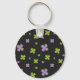 Seamless floral pattern, lucky green and purple shamrocks on black background.