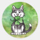 A black and white cat holding a three-leafed shamrock in his mouth, for St. Patrick's Day, or just for fun!