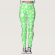 Light green leggings with white shamrocks. The shamrocks have three leaves, are different sizes, and are scattered in a random pattern.