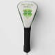 Stylish golf club cover done in a neutral linen look and graphics of a green four leaf clover. Green text reads, My Lucky Driver, and can be personalised to read what you want. Great gift idea. Chose either driver cover or putter cover.