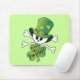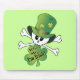 Adorable skull and crossbones with a Leprechaun hat and shamrocks. Message reads "Kiss me...I'm Irish!"