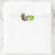 Squirrel holding a green shamrock, heralds spring and St. Patrick's Day.