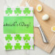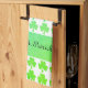 Personalise unique festive holiday kitchen towel for pats day. Custom text and white background. Adorable Green Clovers Shamrock with Polka dots pattern and customisable text Happy St. Patrick's Day!