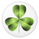 This ceramic know is embellished with a graphic design featuring a bright green three leaf clover or shamrock.