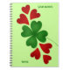 A cute spiral bound notebook for St. Patrick's Day or any day with a green 4 leaf clover and red hearts. Perfect for the romantic.