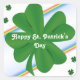 Cute picture of a big shamrock, with a rainbow background and small shamrocks, is featured on this square sticker for St. Patrick's Day. Message on big shamrock reads, "Happy St. Patrick's Day", you can use these stickers for that special mailing. decorating and more!