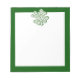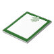 5.5” x 6” notepad an image of a four-leaf clover filled with shamrocks and top hats on white and a white writing space with a dark green border. See matching notebook. See the entire St. Patrick’s Day Notepad collection under the OFFICE category in the HOLIDAYS section.