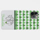 This design features a pattern of green shamrocks and a horse with a horseshoe.