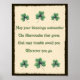 Shamrocks Irish Blessing has green text, that reads, "May your blessings outnumber the shamrocks that grow, and may trouble avoid you wherever you go." Shamrocks decorate the top and bottom, painted by Linda Baysinger Peck.