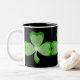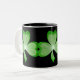 A modern design featuring three shining, sparkling, green shamrocks on a black background. Mug with a customisable design for you to personalise with your own background colour, text, pictures and ideas. Available in all style options. Created using original photographs and digital techniques by Jess Perry.