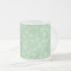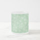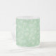 A pretty Frosted Glass Coffee Mug, with a pattern of Light Green Shamrocks outlined in White, on Light Green background. Part of the Posh & Painterly 'Shamrocks' collection, this pattern can be adjusted to fit any mug.