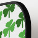 This design features a pattern of green shamrocks and a horse with a horseshoe.