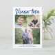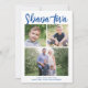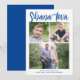 This modern Rosh Hashanah photo card features a simple white background with modern calligraphy script in blue. The greeting on the front says "Shana Tova". It accommodates three photos (two square and one horizontal). On the back there is a coordinating blue background which can be removed or customised. Design Tip: You can add another photo or more text to the back!