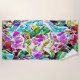 Flamboyant coloured shapes and a little shiny with some shapes that resemble some type of stone that are separated by a smooth white background that resembles some kind of creamy white paint or white grout.
