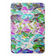 Flamboyant coloured shapes and a little shiny with some shapes that resemble some type of stone that are separated by a smooth white background that resembles some kind of creamy white paint or white grout.