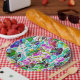 Shape of very colourful stones dipped in milk soup paper plate